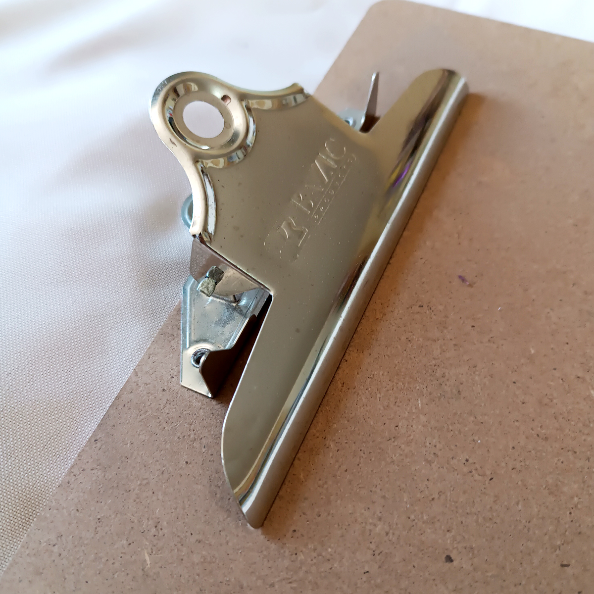 Cuenta con clip metálico de gran tamaño para sujetar una amplia cantidad de papeles.